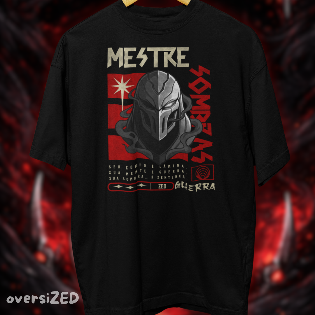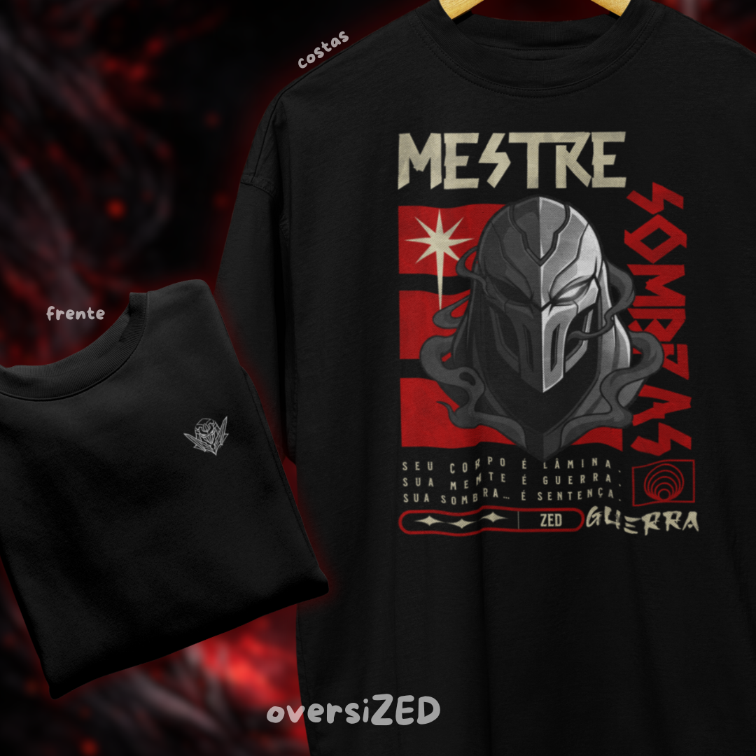 A Camiseta Oversized Zed - Way of Shadows foi criada para quem domina o jogo com estratégia, foco e atitude. Inspirada no mestre das sombras, essa linha traz o equilíbrio perfeito entre força, estratégia e mistério.