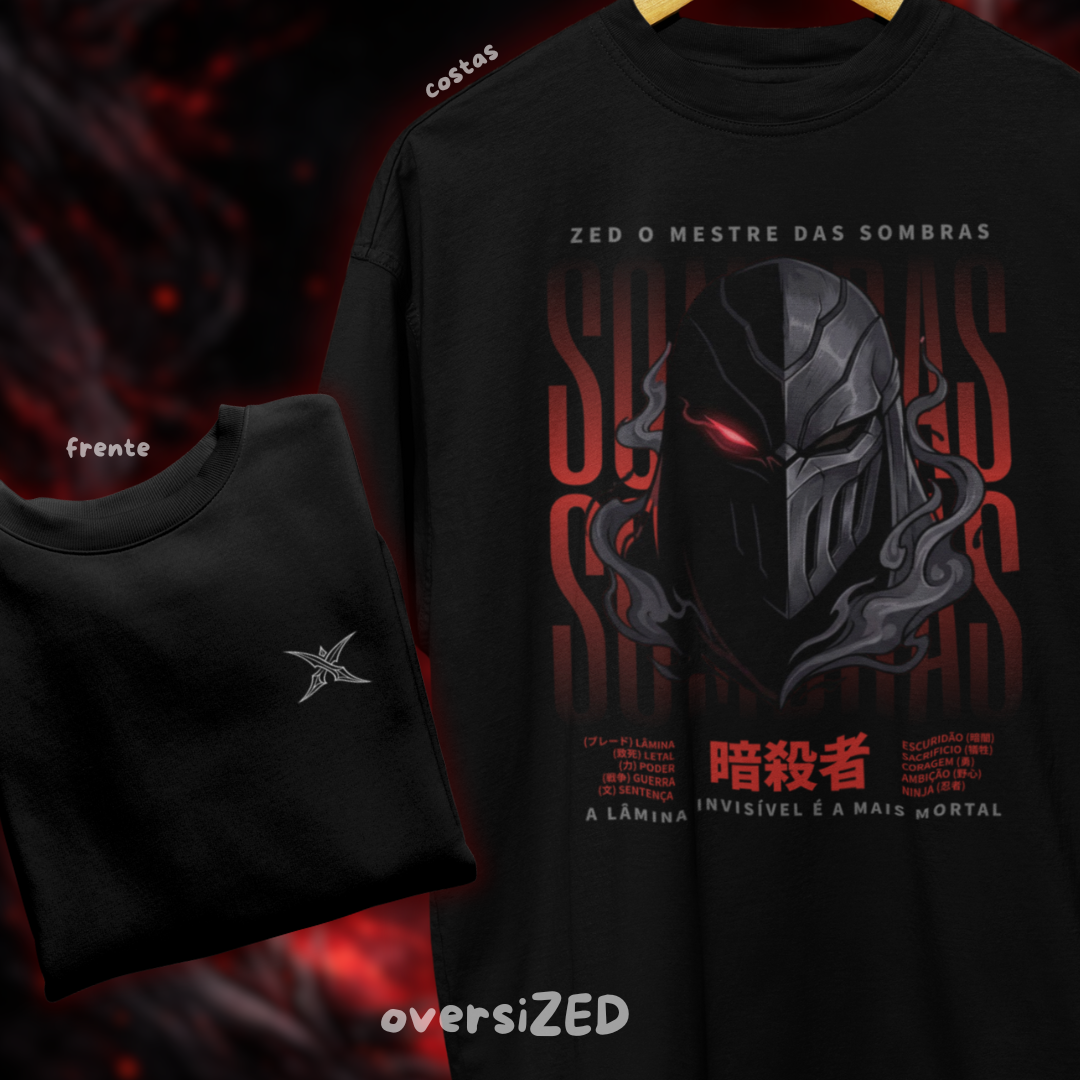 A Camiseta Oversized Zed - Way of Shadows foi criada para quem domina o jogo com estratégia, foco e atitude. Inspirada no mestre das sombras, essa linha traz o equilíbrio perfeito entre força, estratégia e mistério. ⚔